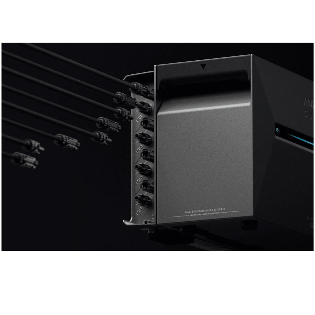 De Anker SOLIX Solarbank 3 Pro is uitgerust met vier ingangen voor zonnepanelen, waarop je in totaal tot 8 panelen rechtstreeks kunt aansluiten. Het maximale vermogen per ingang bedraagt 900 watt, dus 3600 watt in het totaal. Wanneer meerdere panelen op één ingang worden aangesloten, dient dit parallel te gebeuren.